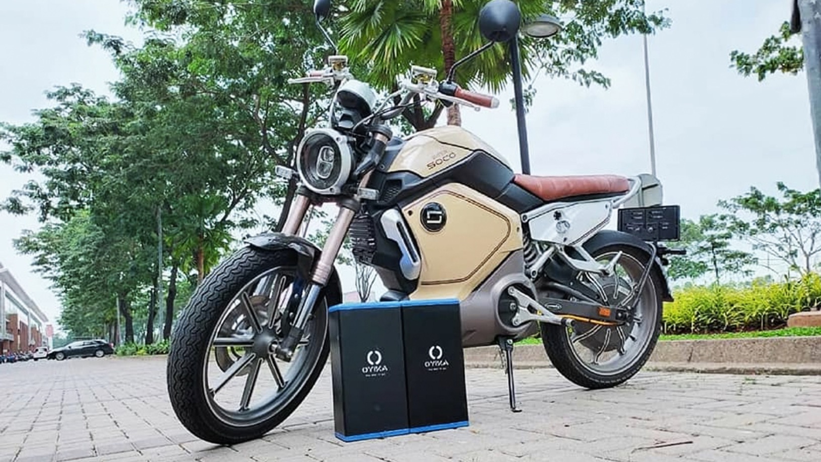 The motorcycles are provided through partnerships with local brands such as Viar, Selis, Elvindo and Voltra, and foreign brands Niu and Super Soco. Oyika installs a custom discharge port on the motorcycles, allowing these different brands to use the same Oyika batteries. Two batteries are installed simultaneously, and Lim said most drivers travel 50–60 km with both batteries fully charged.